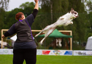 Stayed with breeder and half-brother Voodoo (Zavi x Fru). She compete in frisbee and flyball.